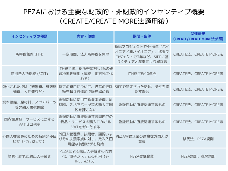 PEZAは、フィリピン政府が設けた「経済特区」を管理する機関です。この特区内で事業を行う外国企業に対し、税金を大幅に安くしたり、面倒な手続きを簡素化したりといった、手厚い支援を提供します。